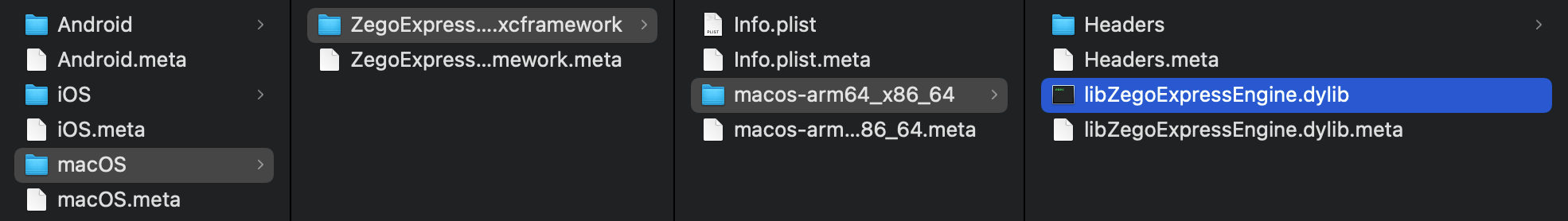 const string defaultLocationInProj = path + "/Libraries/Plugins/iOS/iphoneos"; // The actual path to the ZegoExrpessFramework file.