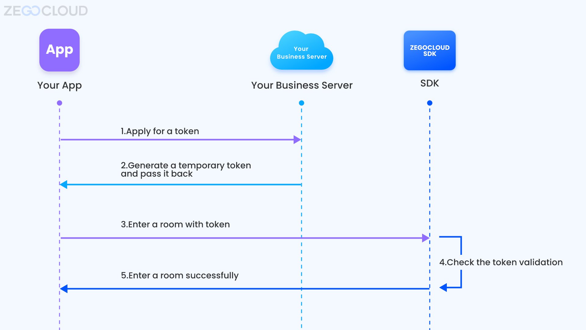 To avoid unauthorized service access or operations, ZEGOCLOUD uses digital Tokens to verify user identity, control and validate user privileges. You will need to pass a Token when you log in to a room.