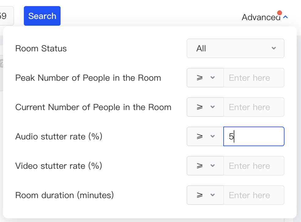 - Click the advanced button on the right to configure advanced filter conditions, making it easier to find the rooms of interest.